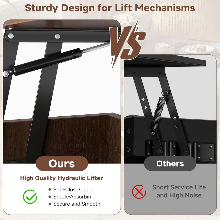 - 4-in-1 versatility: your lift-top adjusts to multiple heights; when fully unfolded, you get a dining or gaming surface for eight, half-expanded makes a two-person workstation, and when closed it keeps surfaces clear while storing items.