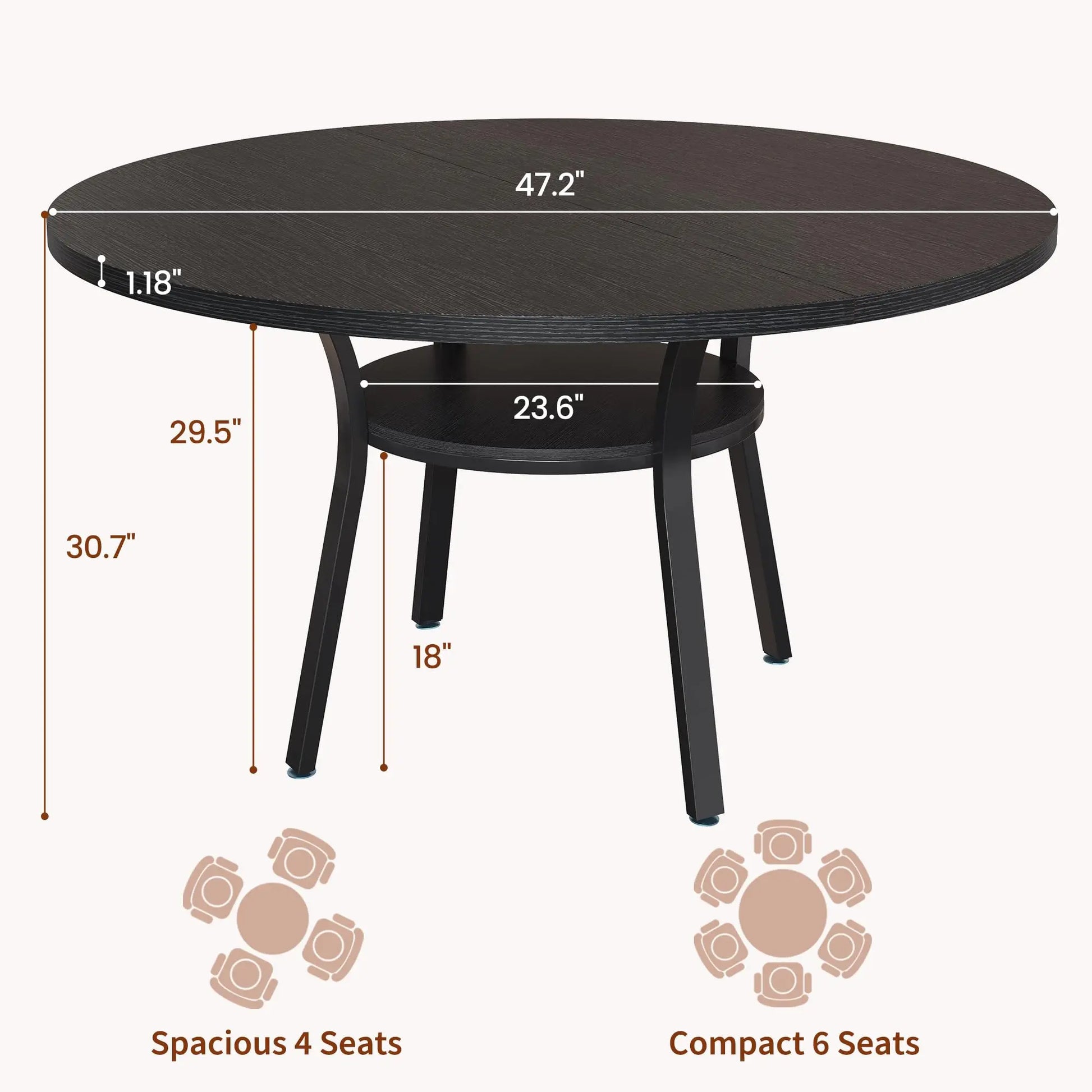 - Built-in storage shelf keeps dinnerware, napkins, and kitchen essentials within reach, so your tabletop stays clear during family dinners and casual gatherings.