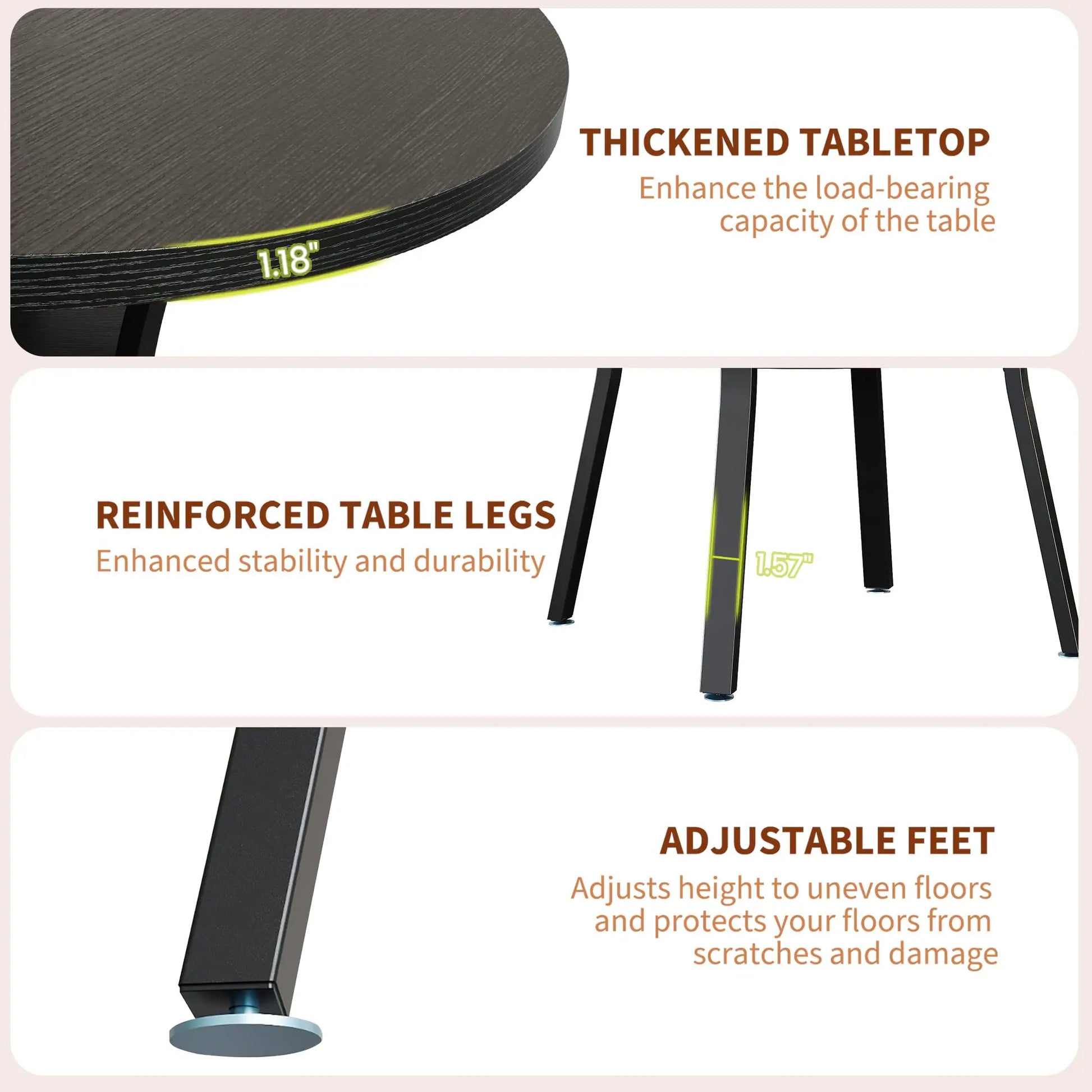 - Sturdy, durable construction with a stable base provides reliable support for everyday meals and lively conversations, resisting wobble even when the table is fully loaded.